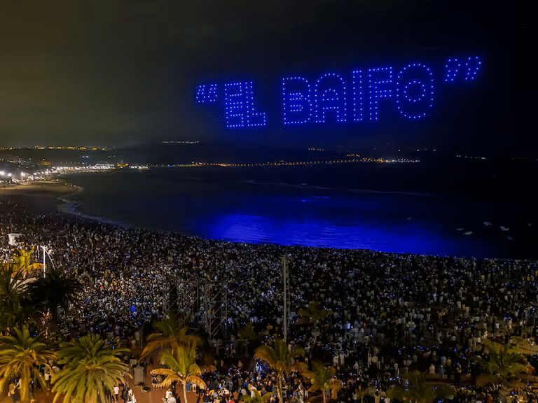 La acción tuvo lugar en la playa de Las Canteras, en Las Palmas de Gran Canaria, donde miles de personas se reunieron para presenciar un show que convirtió el cielo en una pantalla gigante. Más allá del impacto presencial, el evento fue concebido como una experiencia pensada para amplificarse en redes sociales y medios.